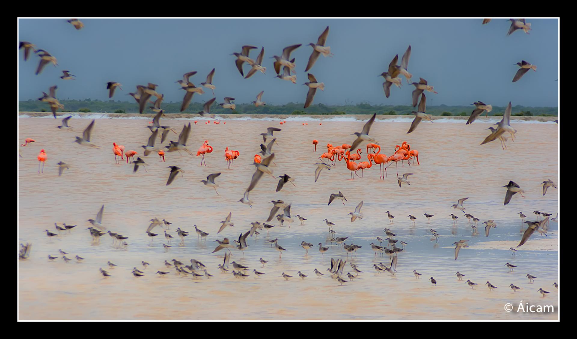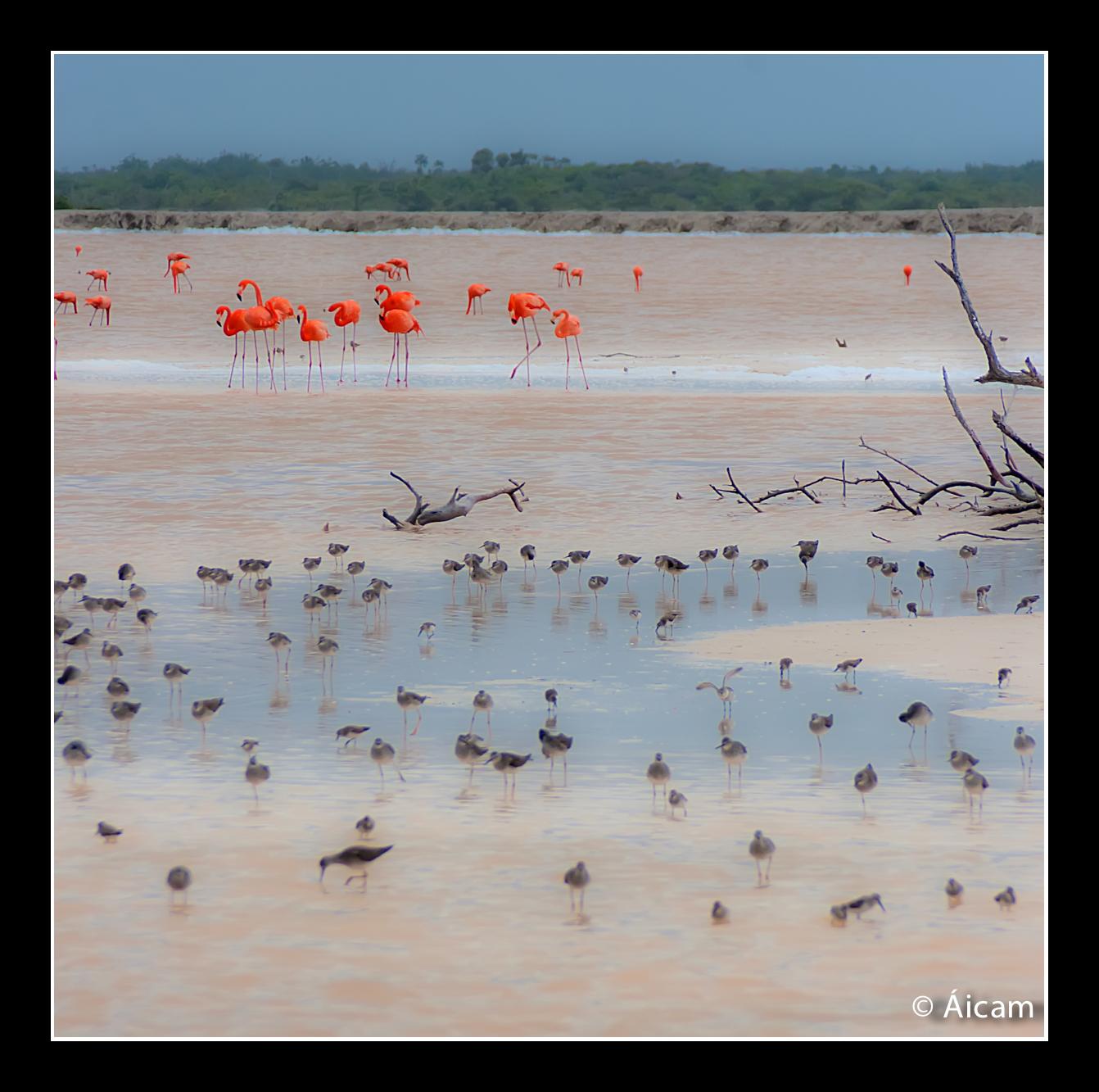 En esta zona anidan los Flamencos Rosa (Phoenicopterus ruber rubor), también Garzas, Pelícanos, Aguilas, etc.